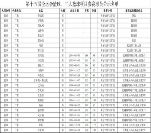 雷速体育10月14报道 中国篮球协会今天公示第十五届全国运动会篮球项目决赛阶段球员名单,崔永熙、徐昕将代表广东队参加22岁以下组比赛。