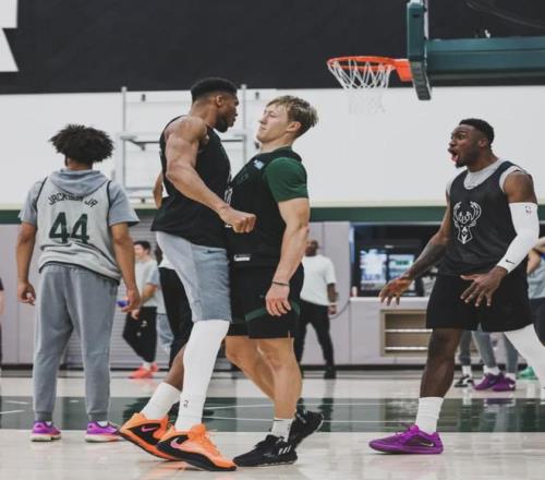 已经有网友开玩笑说,可能字母哥家的狗都可以来雄鹿训练馆看门。