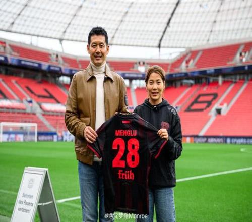 杨晨到访勒沃库森主场拜耳竞技场,沈梦露接待并陪同参观