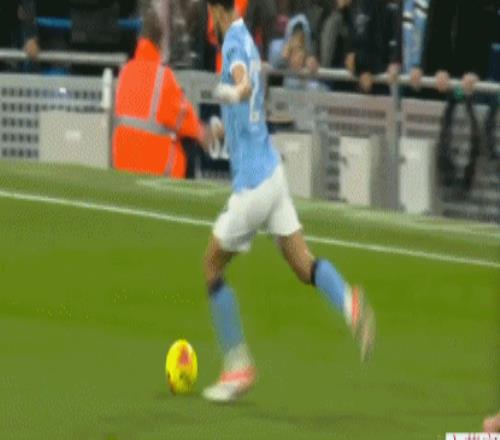 第28分钟,努内斯右路横传,哈兰德头球吊射破门,1比0!进球之后,哈兰德冲到角球区飞踹角旗,发泄着踢飞点球的郁闷。